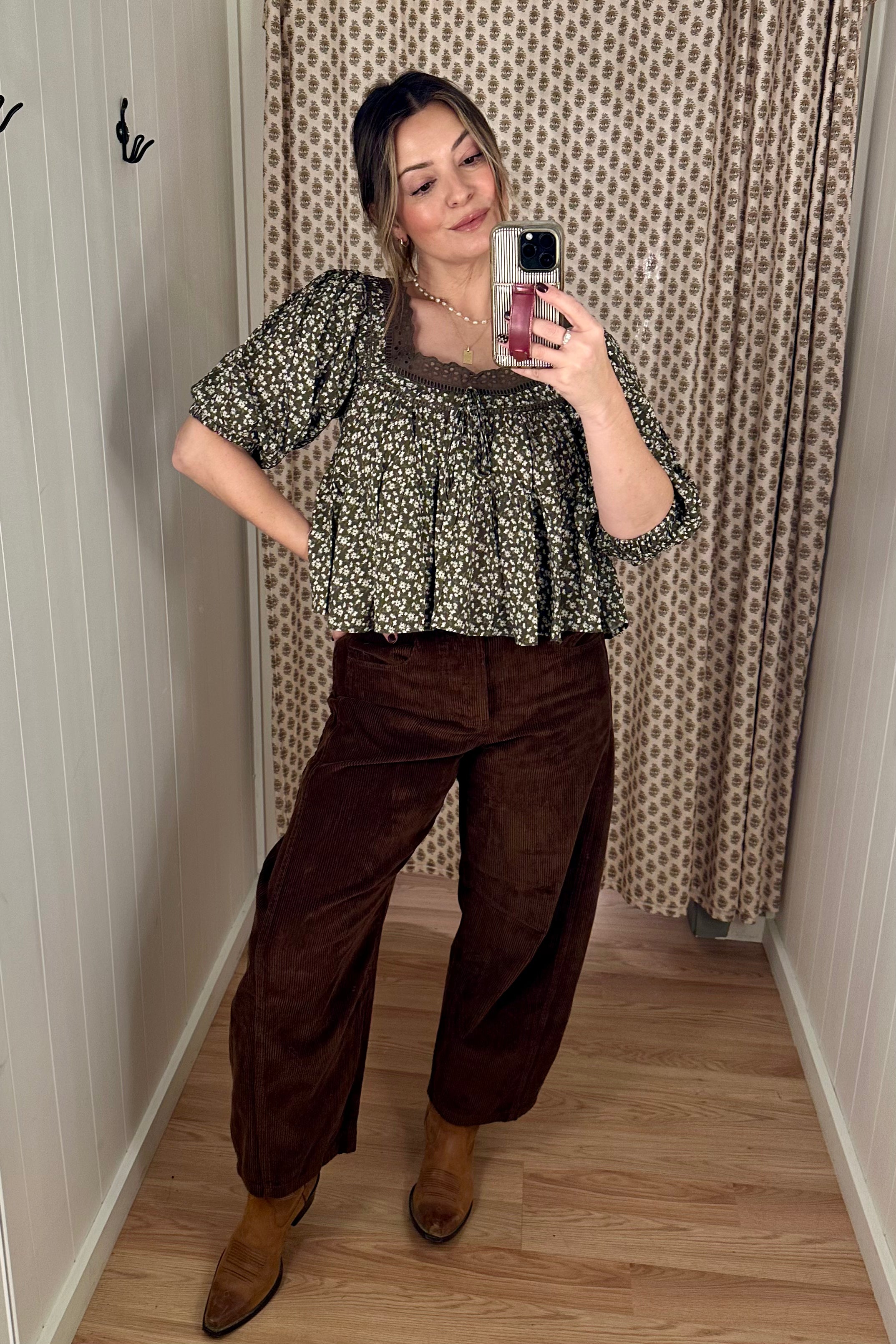 Paired with our Cowboy Corduroy Barrels in Brown!