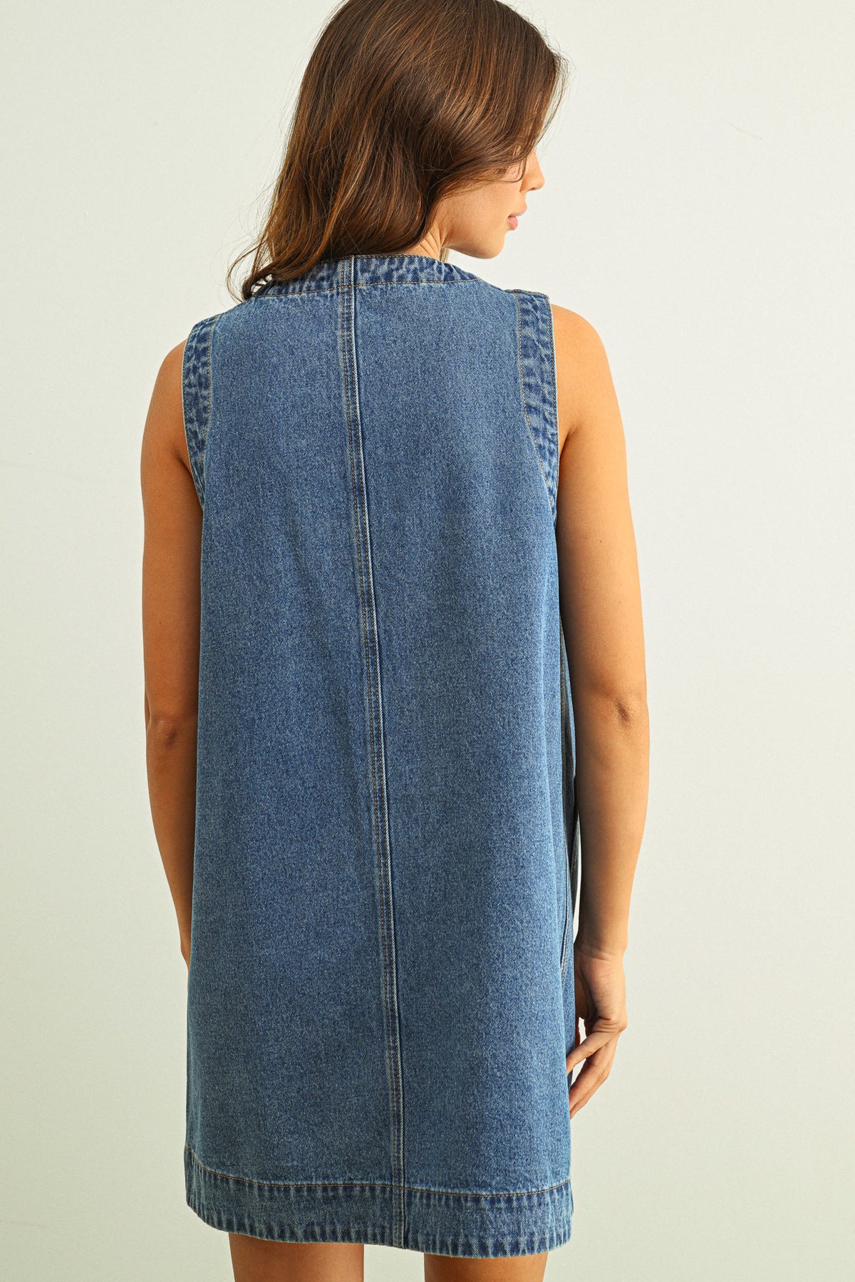 Meet your new go-to dress! This sleeveless button-front beauty features authentic denim that's perfect for those "what should I wear?" moments. The timeless design transitions seamlessly from brunch to sunset strolls, and the relaxed fit means you can move freely without sacrificing style.