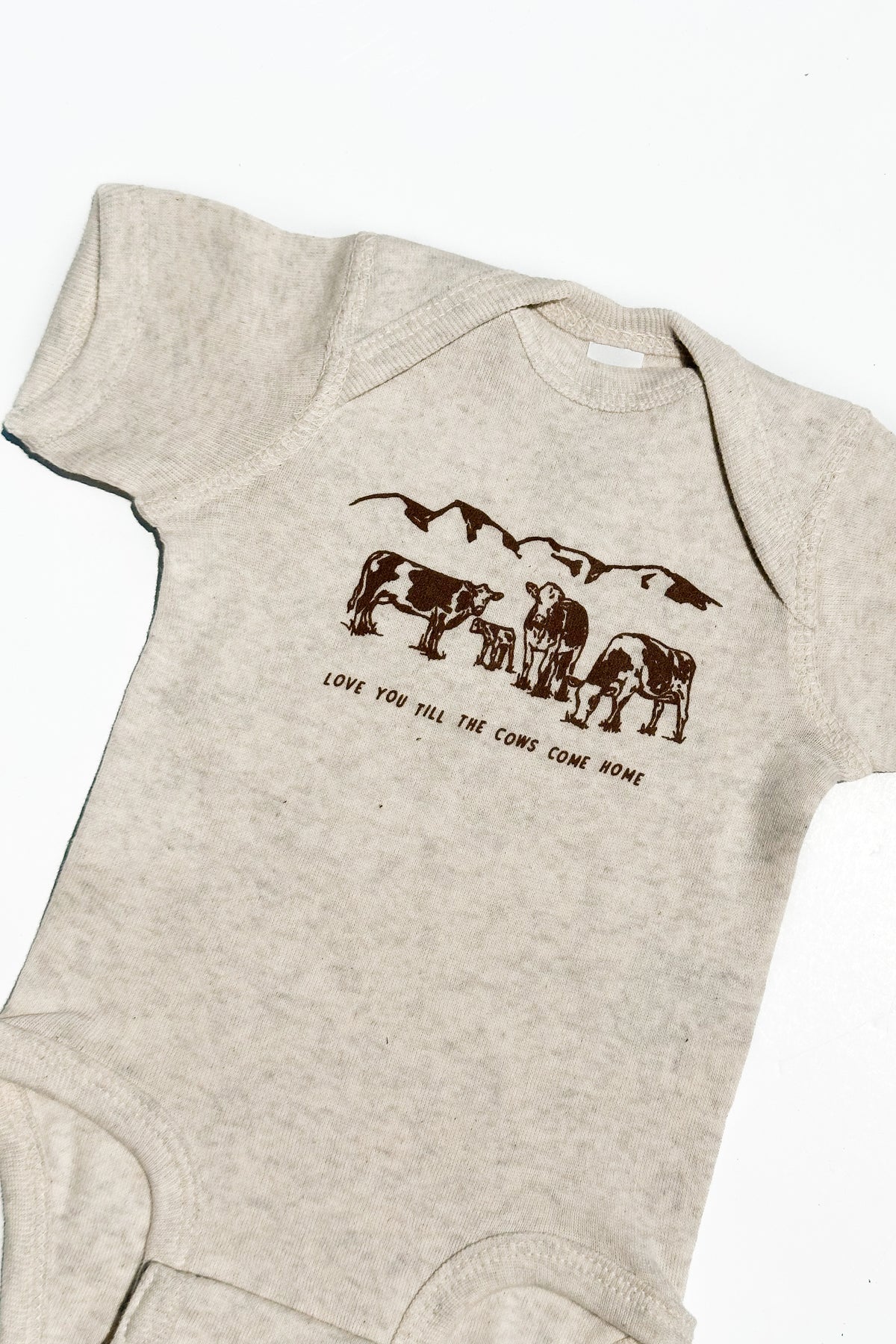 This adorable hand-drawn cow graphic will make your heart moo- it's the perfect way to show that your love is here to stay! Keep them close and match with the adult sized Cows Come Home Sweatshirt or Trucker Hat, for the cutest family look!