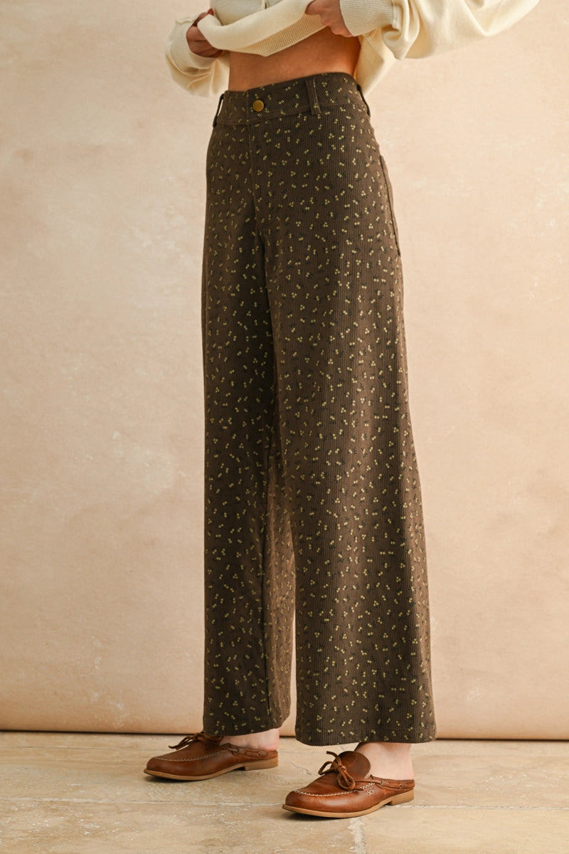 Unleash your inner fashionista with our Cutie Courd Pants in Brown! These ditsy floral corduroy pants feature a high rise for a flattering fit, with a convenient zipper fly and trendy wide leg design. Perfect for adding a touch of vintage charm to any outfit. (No, they're not edible.)