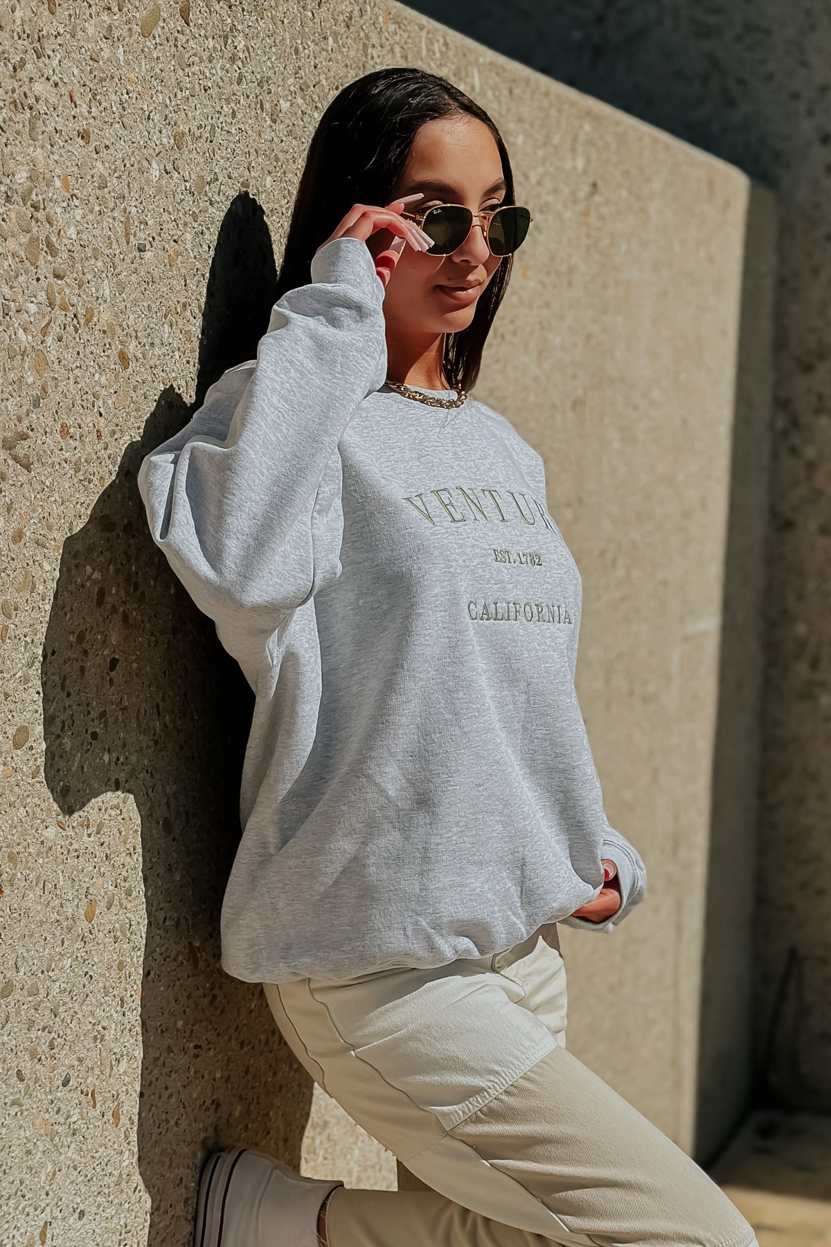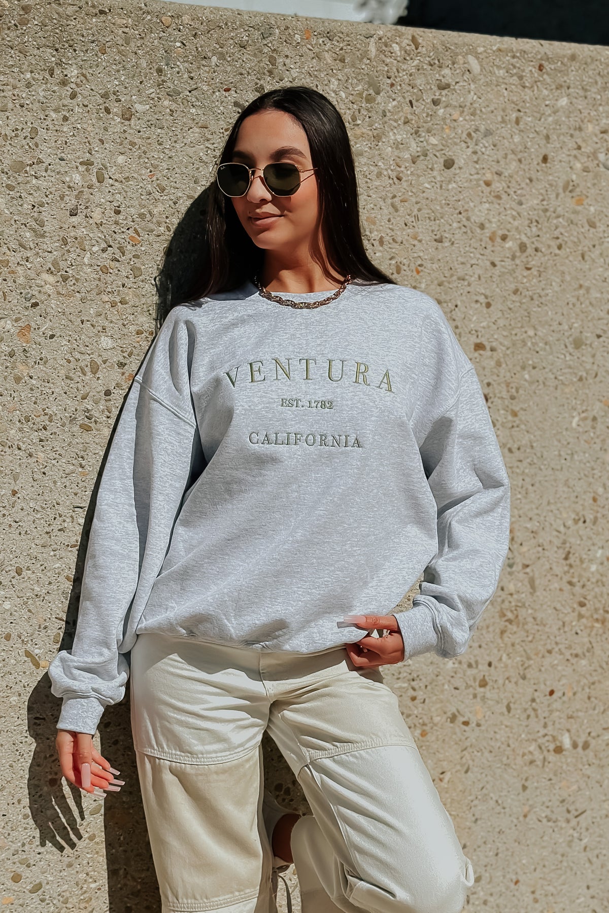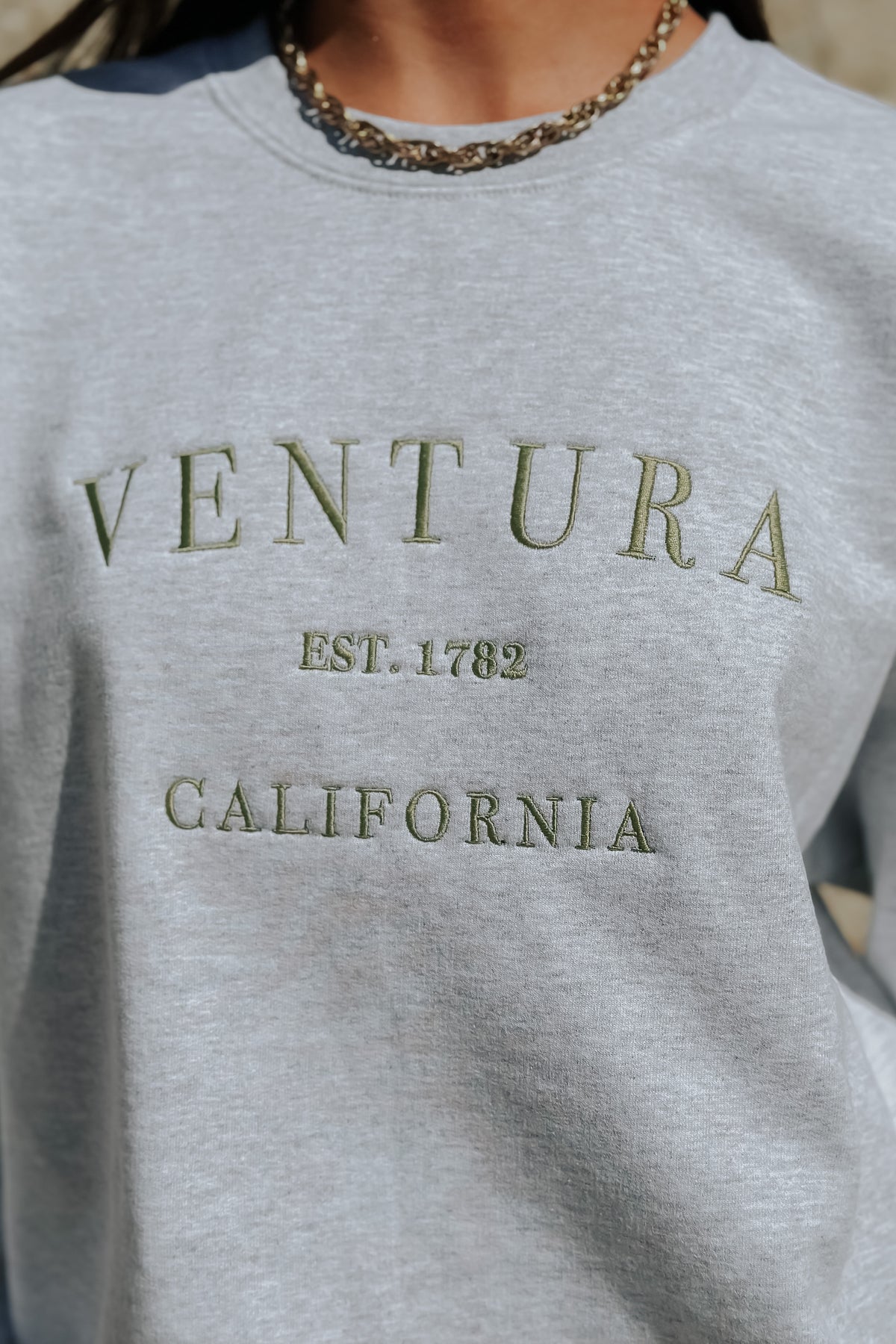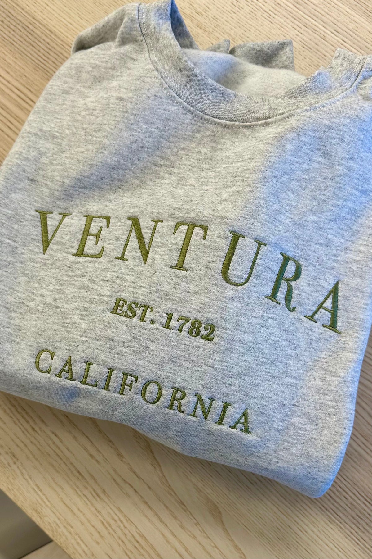 Represent the beautiful, iconic city of Ventura in this embroidered sweatshirt! This city is so close to our hearts, it can be for you too when reppin' it on your chest. Featuring a sage green embroidery, fleece inside and an oversized fit.