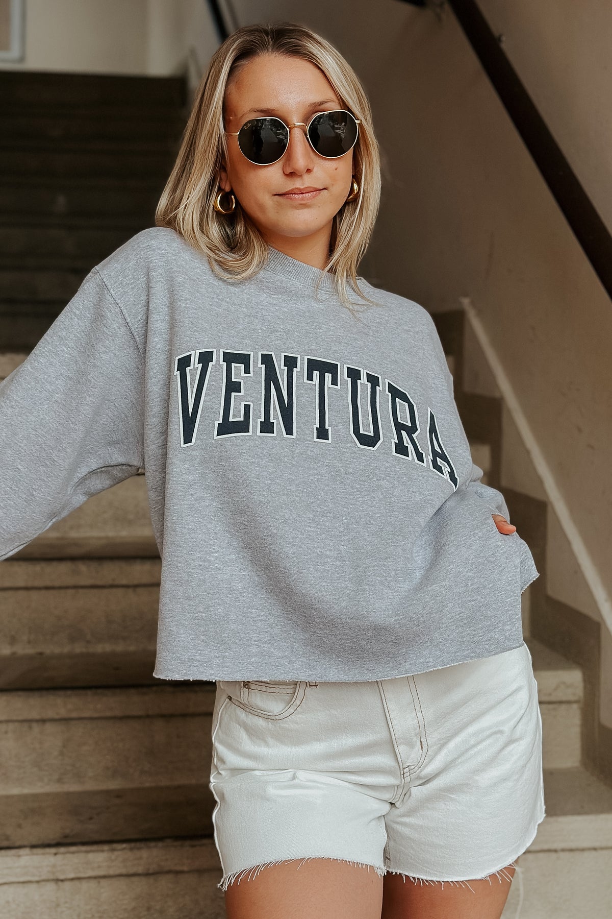 Represent the beautiful, iconic city of Ventura in this new cropped varsity crewneck sweatshirt! This city is so close to our hearts, it can be for you too when reppin' it on your chest. Featuring a fleece inside and an oversized fit.