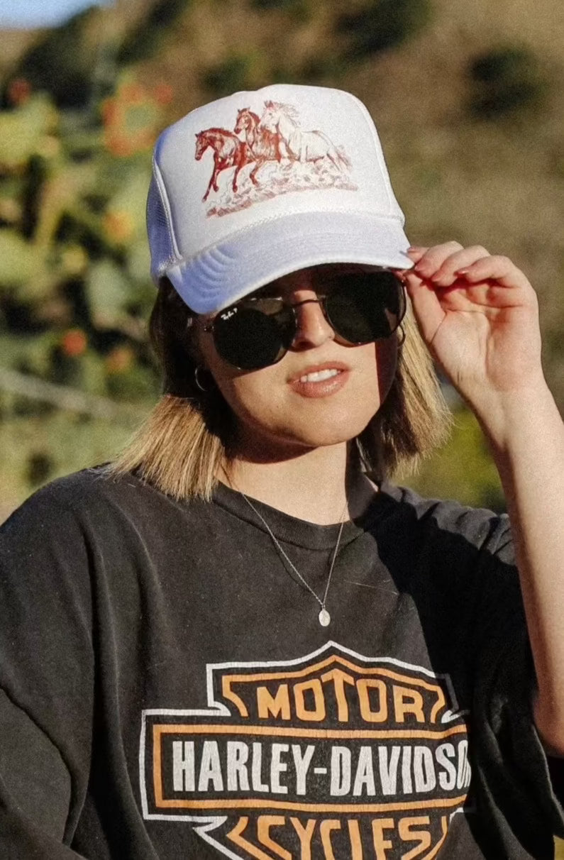 Wild Horses Trucker Hat (White)