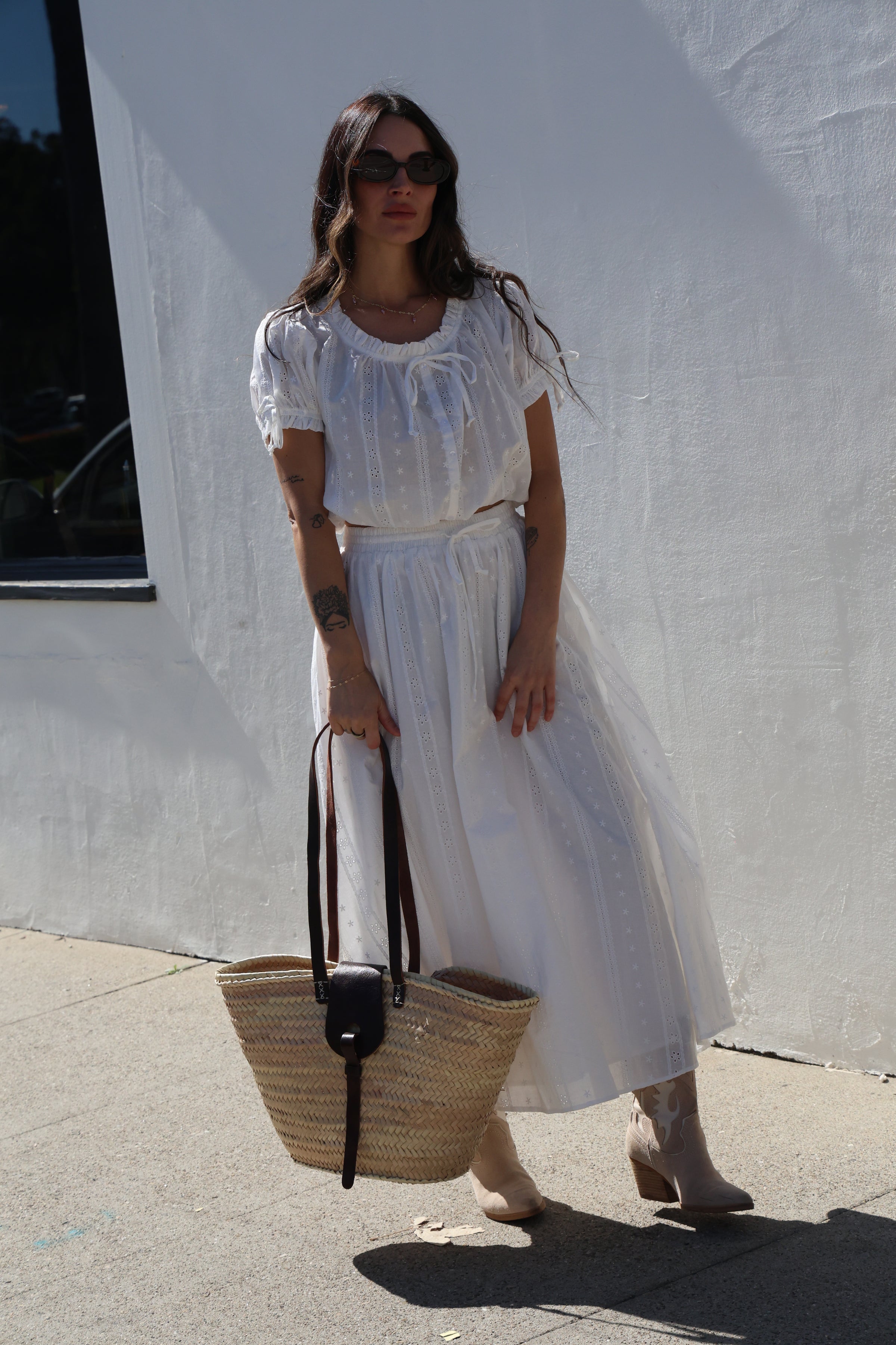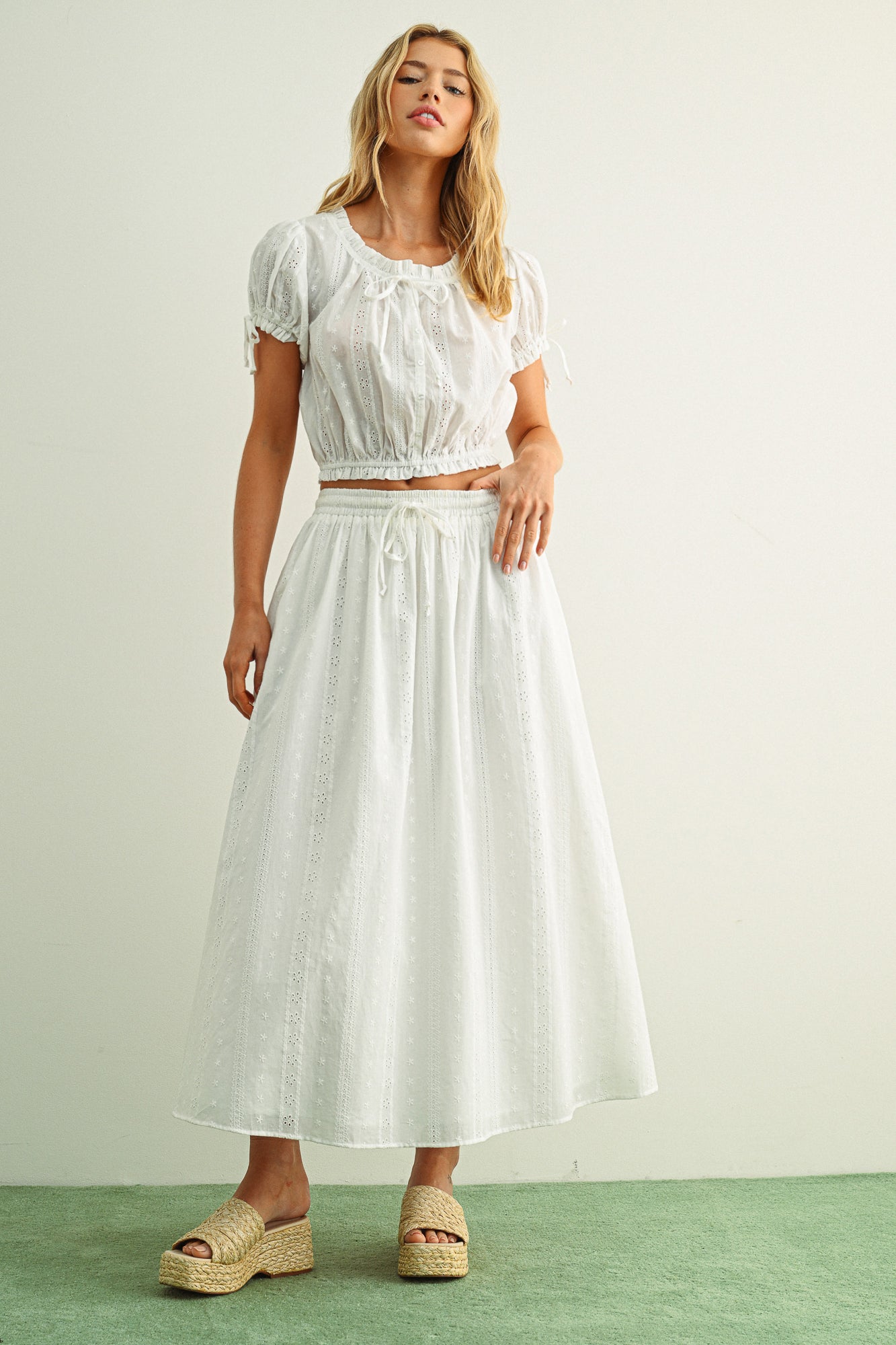 Elevate your wardrobe with the Rosewood Eyelet skirt, a timeless piece featuring a comfortable embroidery elastic band waist and graceful full skirt silhouette. The delicate eyelet detailing adds feminine charm while the elastic waistband ensures all-day comfort and ease of movement. Perfect for casual outings, garden parties, or layered styling, this skirt transitions effortlessly from season to season. Pair with our Rosewood Eyelet Top!
